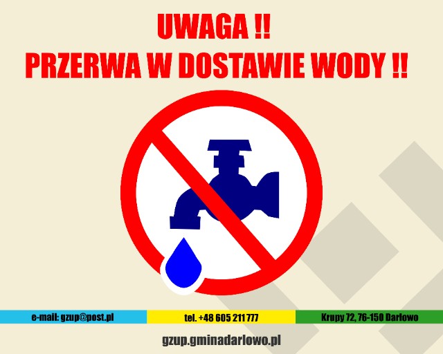 Gminny Zakład Użyteczności Publicznej Sp. z o.o. w Krupach informuje, że w dniu 10 marca 2026 r. w godzinach od 9⁰⁰ do 13⁰⁰ nastąpi przerwa w dostawie wody dla odbiorców miejscowości Nowy Kraków, Jeżyce.
